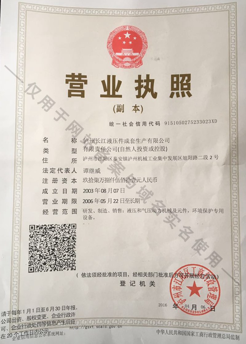 - 瀘州長(zhǎng)江液壓件成套生產(chǎn)有限公司