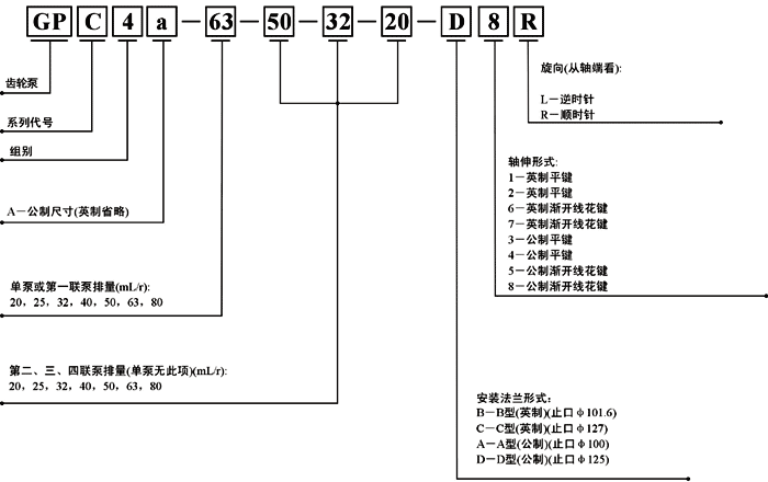 注:選用GPC4a時(shí),其安裝法蘭形式、軸伸形式均按公制選取。 |
