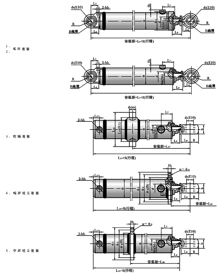 5、鉸軸連接的行程不得小于表中最小行程S1值。