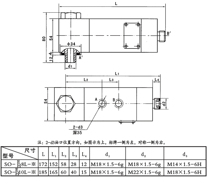 外形及安裝連接尺寸: 型號SO-※※L-※