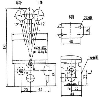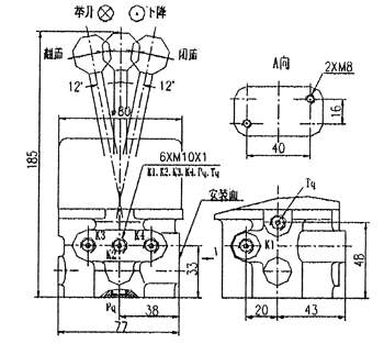 4(2)KQF型操縱氣閥的原始位置Pq口與T口是封閉的,各控制口K與TQ口相通。搬動(dòng)手柄可在四個(gè)或二個(gè)不同角度。該閥的工作原理示意圖如下
