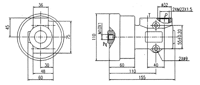 用途與特征: QF—L15型氣控舉升閥是我公司根據氣液控制系統而設計制造的氣動(dòng)控制換向閥,適用于重載自卸車(chē)液壓舉升系統。該閥先導控制部分以壓縮空氣為工作介質(zhì),通過(guò)氣缸動(dòng)作推動(dòng)主閥芯的開(kāi)或閉,從而轉換工作機能,在液壓舉升系統中起接通或卸荷作用,實(shí)現自卸汽車(chē)車(chē)箱的舉升和下降。 工作原理: QF—L15型氣控舉升閥的原始位置P口與T口是連通的(常開(kāi)式結構)。該閥工作時(shí),利用壓縮空氣通過(guò)氣缸推動(dòng)閥芯封閉,油路由常通位置轉為工作位置,即實(shí)現車(chē)廂的舉升;當壓力超過(guò)溢流閥調定壓力時(shí),P口端壓力油克服彈簧推力,使P口與T口接通油液流入油箱。切斷氣源,系統卸荷車(chē)廂下降。該閥的工作原理示意圖如下。 技術(shù)參數/工作油液: 1.工作壓力:16 MPa 2.工作流量:100 L/min 3.控制氣壓.0.4—0.8 MPa 4.溫度范圍:-20一+80(C°) 5.粘度范圍:10~400 (mm2/S) 6.過(guò)慮精度:≤10 (μm) 注:油液最高污染等級按GB/T14039之19/16執行。 型號說(shuō)明: