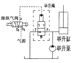 OJF—E15(20)L型氣控舉升閥的原始位置P口與T口是連通的(常開(kāi)式結構)。該閥工作時(shí),利用壓縮空氣通過(guò)氣缸推動(dòng)閥芯封閉,油路由常通位置轉為工作位置,即實(shí)現車(chē)廂的舉升;切斷氣源P口與T口接通油液流入油箱,系統卸荷車(chē)廂下降。該閥的工作原理示意圖如下!